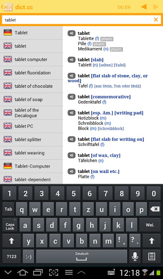 «Dict.cc плюс» приложение без рекламы и поставляется с дополнительными функциями: