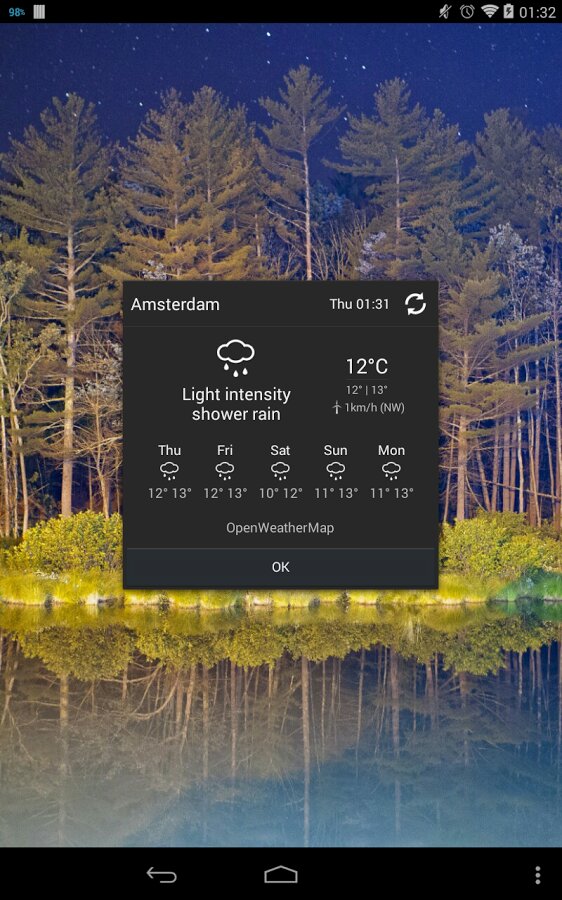 - Возможность показывать краткую информацию о погоде и прогноз погоды при касании