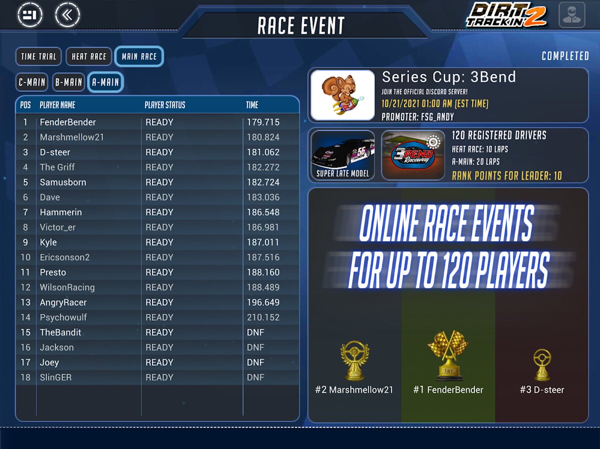 Dirt Trackin 2 предлагает полноценный гоночный уикенд с квалификацией, заездами и финальными гонками. В режиме карьеры вы сможете пройти путь от новичка до чемпиона в пяти кубках. А с тюнингом машин и адаптивным ИИ, включая безумный режим сложности, каждое соревнование становится настоящим испытанием. Реальный мультиплеер добавляет напряжённой динамики — бросьте вызов игрокам со всего мира.