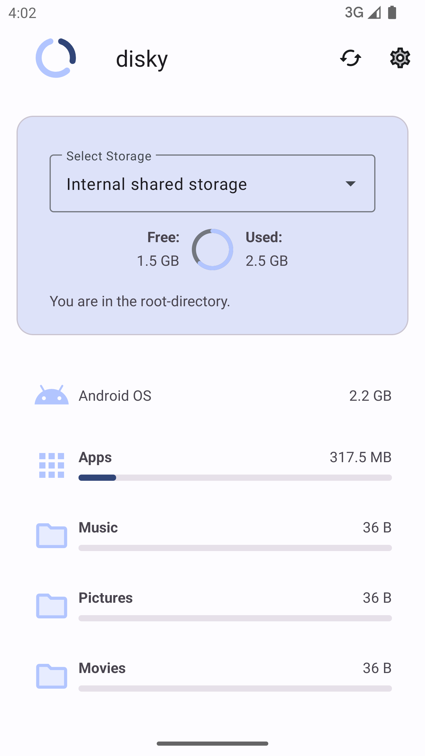 Приложение поддерживает все локальные файловые системы на вашем устройстве, давая вам полное представление об использовании памяти в разных местах. Оно имеет лаконичный интерфейс, созданный с учетом принципов дизайна Material You, что означает, что он автоматически адаптируется к цветовой схеме и теме вашей системы Android. Если вам нужно освободить место для новых фотографий, приложений или обновлений системы, этот инструмент обеспечивает визуальную наглядность и скорость, необходимые для принятия мер без лишних хлопот.
