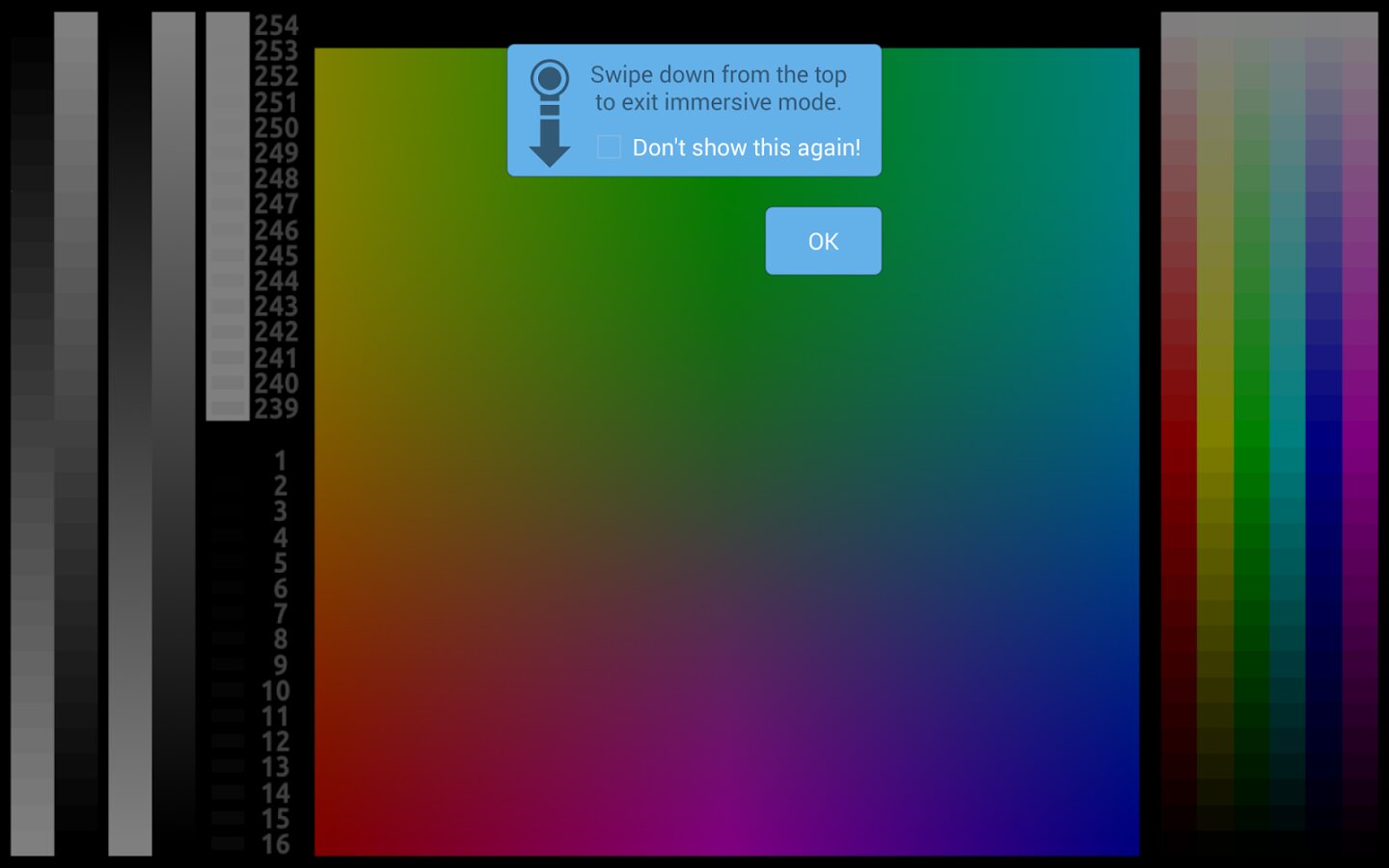 - 4-цветный тест градиента с коррекцией изменения ориентации (Android 2.2 и выше)