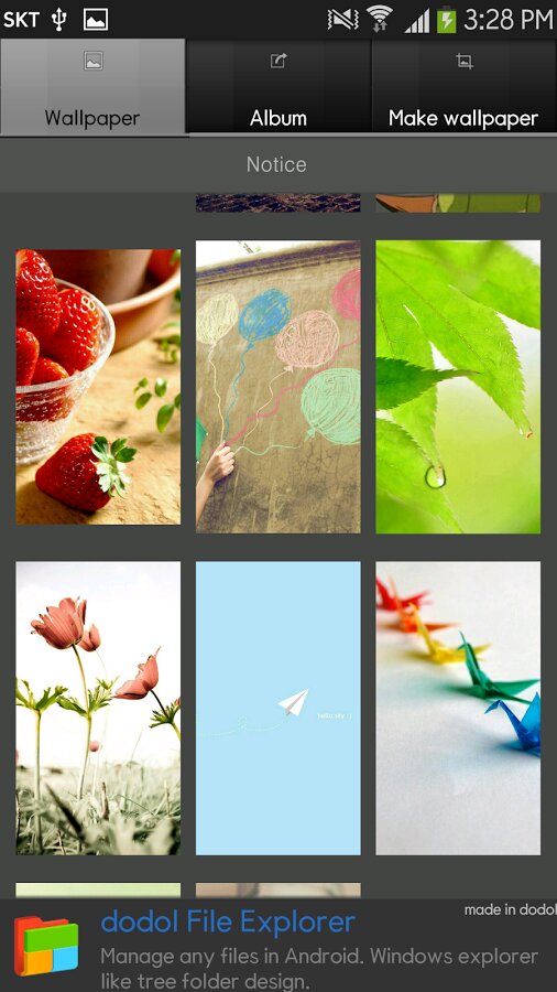 dodol Wallpaper — программа позволяющая подгонять изображения большого разрешения под ваш экран и устанавливать в качестве обоев. Присутствуют функции загрузки и выгрузки обоев в сеть, поиск по ключевым словам в сети\альбоме.