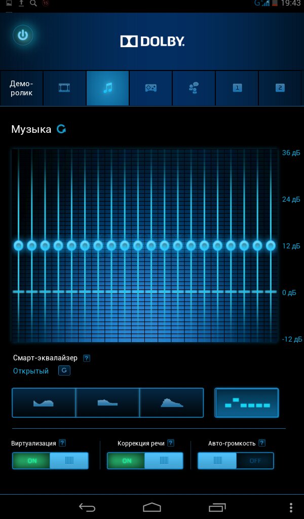 Dolby — эквалайзер для динамиков долби. Этот эквалайзер был взят из планшета Lenova a3300.