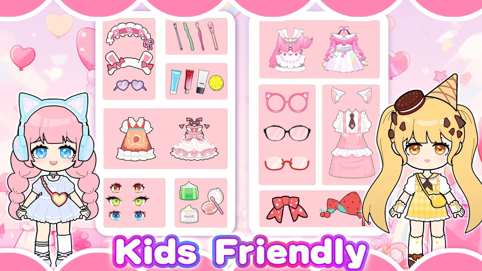 Doll Makeup: Dress up for kids — это красочная игра для детей, в которой можно наряжать милых аниме-кукол и создавать стильные образы.