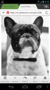 Dolphin Browser Beta (на стадии бета-версии) является усовершенствованной версией WebKit (WebKit — свободный движок для отображения веб-страниц) со значительными улучшениями, что делает его самым мощным из HTML5 браузеров на сегодняшний день.
