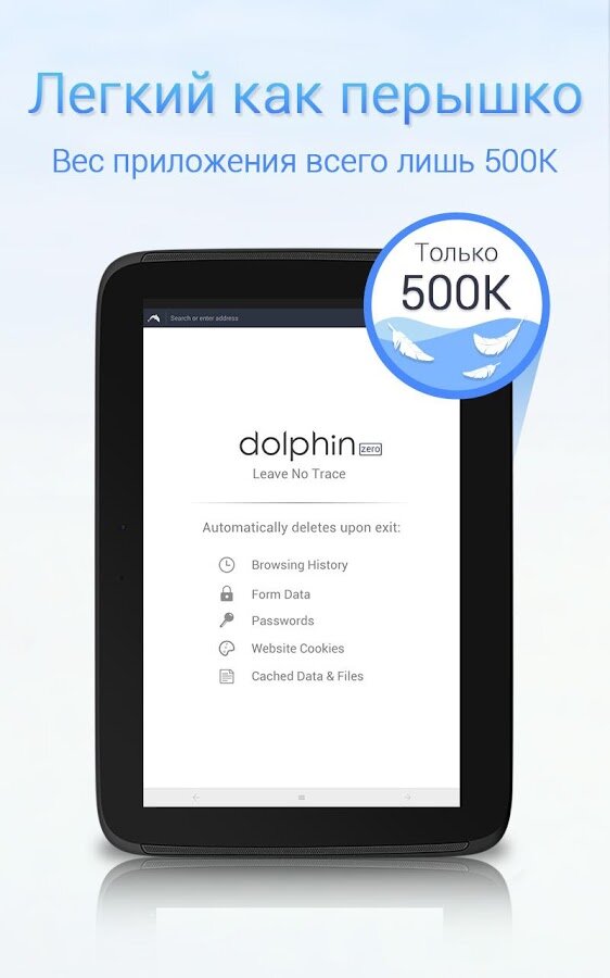 Dolphin Zero — браузер, который позволяет сохранять полную конфиденциальность пользователя. Браузер позволяет автоматически при выходе из программы удалять данные, историю просмотра, кэш, пароли и Cookies.