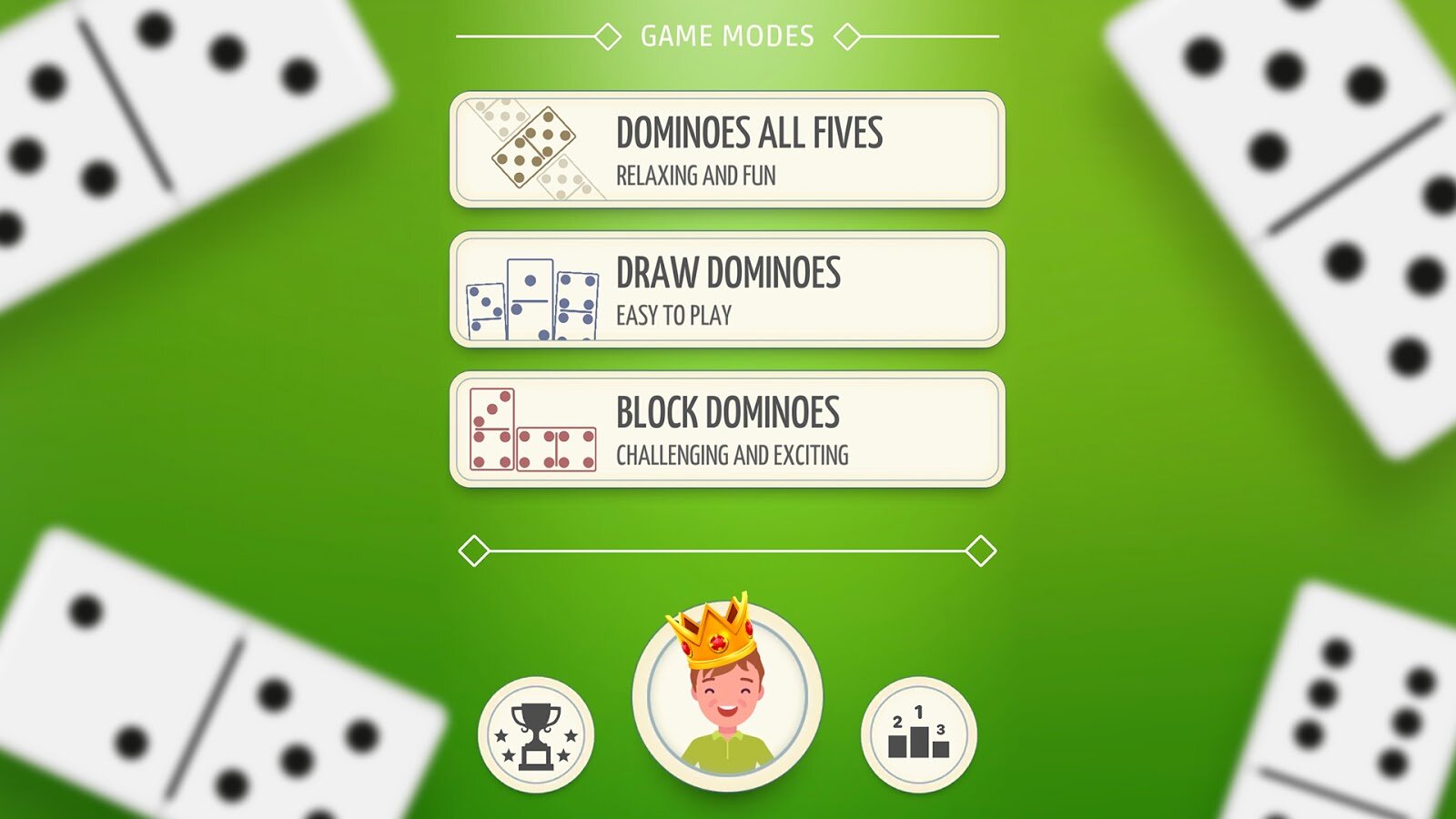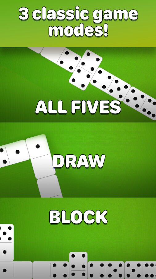 - 3 версии Домино: Пятерки, Блок или Классическое.