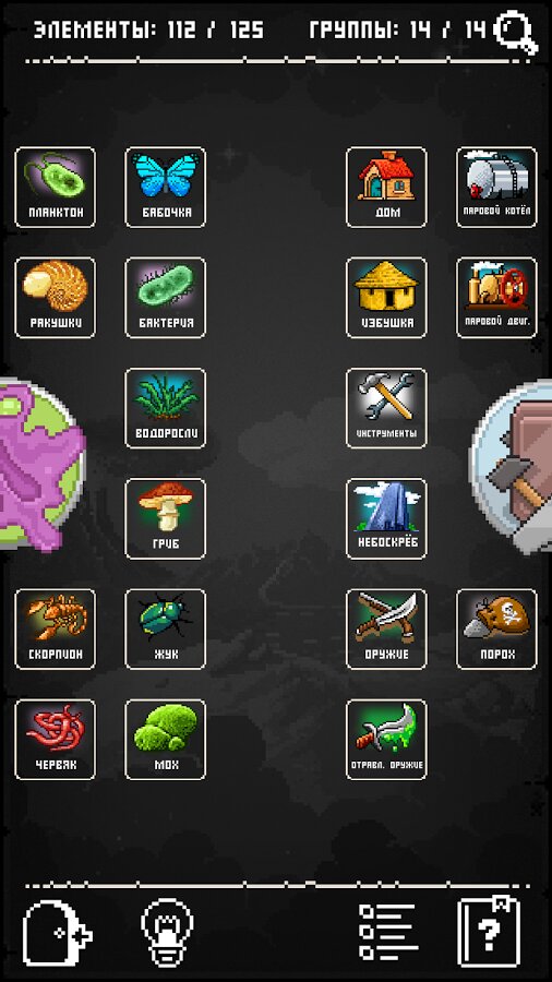 Doodle God 8-bit mania — возвращается в Old School! Новая пиксельная графика и 8-битный звук. Все элементы и реакции были красиво перерисованы в пиксель-арте. Если вы любите игры из 80-х, то вам понравится Doodle God: 8-bit Mania! Более 175 миллионов игроков по всему миру. Доступен на 13 языках. Doodle God перерождается в пикселе! Добро пожаловать в 80-е, в захватывающую головоломку для всех возрастов. Комбинируй различные элементы, чтобы построить вселенную твоей мечты. Вся игра красиво перерисована в пиксельной графике с удивительным новым 8-битным звуком. Конечно, вселенная создавалась не один день, тебя ждет долгий путь, полный радости созидания и творческих мук! Начни с простейших микроорганизмов и сотвори животных, механизмы и целые армии! Но, дорогой бог, будь осторожен! Безграничная способность творить иногда приводит к непредсказуемым последствиям… изобретение колеса может вызвать нашествие зомби! А чтобы тебе не было одиноко, создание каждого нового элемента будет сопровождаться мудрыми и ироничными изречениями величайших мыслителей всех времен! Дай волю богу внутри себя с Doodle God™! — Игра доступна на 13 языках: английском, немецком, французском, испанском, итальянском, голландском, русском, японском, китайском, корейском, португальском, шведском и польском — НОВАЯ пиксельная графика! — НОВЫЙ 8-битный звук! — Смешивай огонь, воду, землю и воздух, чтобы создать Вселенную. — Интуитивный игровой процесс в один клик позволяет сконцентрироваться на умной и созидательной игре! — Сотни интересных, смешных и мудрых цитат и пословиц! — Новые достижения.