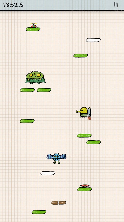 Doodle Jump — прыгаем выше и выше, избегаем дырок в бумаге, плохих существ и неустойчивых платформ.