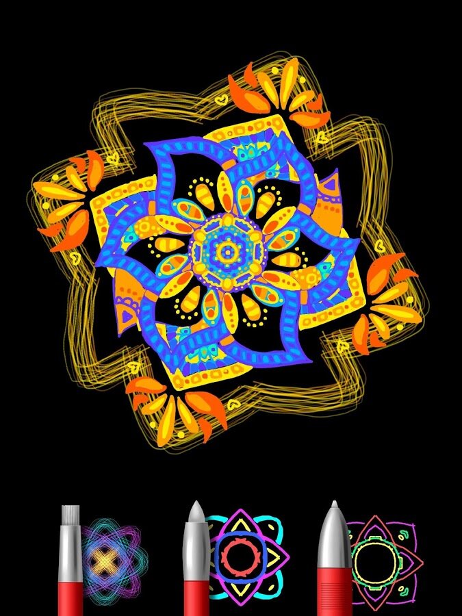 💛Простейший способ рисования каракулей: создайте светящиеся мандалы и волшебные узоры калейдоскопа🌸
