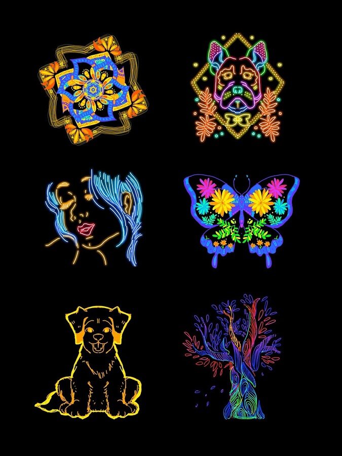 💜Каракули свечение:🖌 Искусство свечения полна приятных сюрпризов.