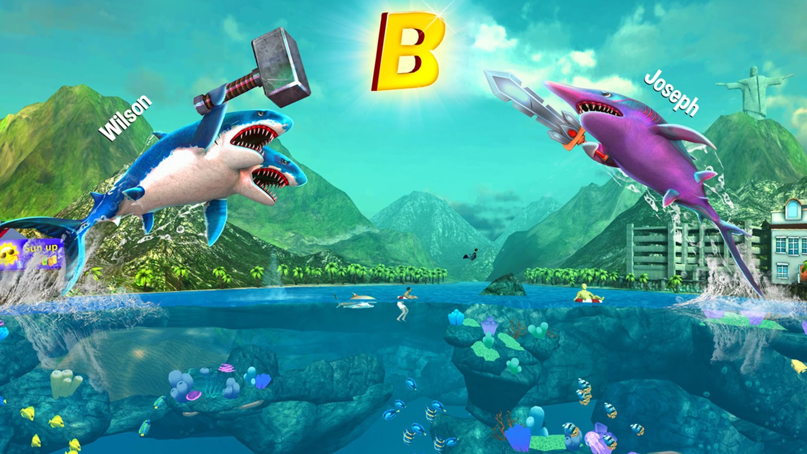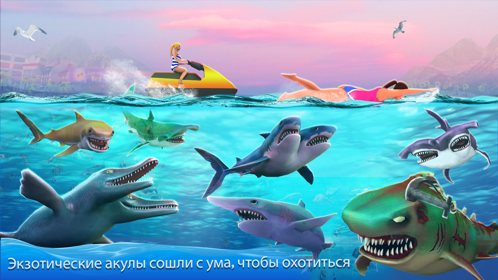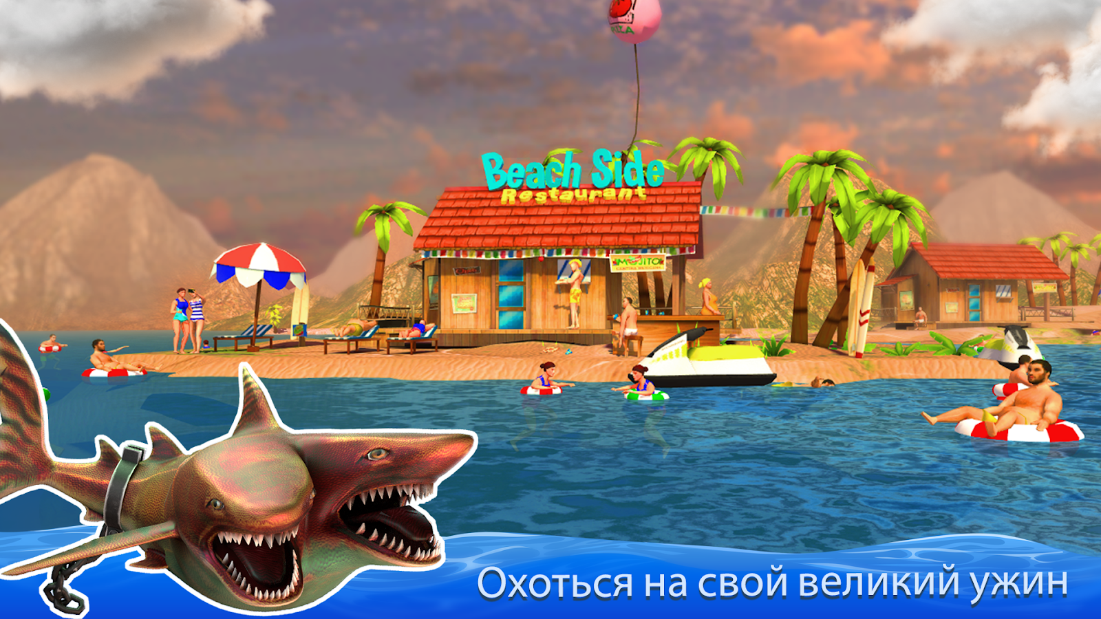 Это настоящая охота на обитателей океана, динамичный триллер с превосходной графикой и красивыми звуковыми эффектами. Весь подводный мир и пляж в твоем распоряжении. Отправляйся в гастрономическое турне с двухголовым хищником, чтобы максимально увеличить ресурсы акулы, развивая ее умения и наращивая ее мышцы. Твоя цель животные и люди, рыбы и медузы — все, что попадает в поле зрения.