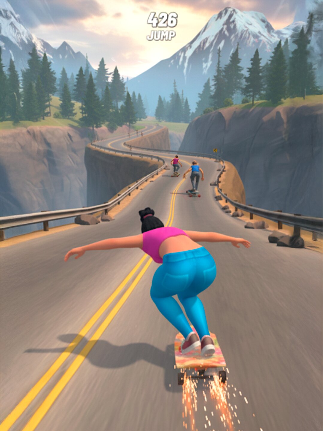 Downhill Skate Race — это экстремальная гоночная игра, сочетающая в себе высокоскоростной скейтбординг и соревновательные испытания по спуску с горы.