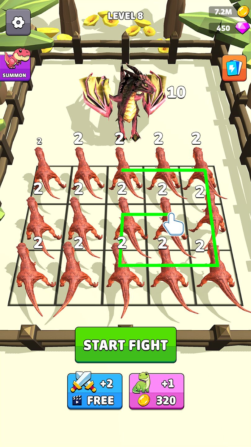 Dragons Merge: Боевые игры приглашает вас овладеть искусством слияния драконов в ярком фэнтезийном мире. Начните с простых драконьих яиц и стратегически объединяйте одинаковых существ, чтобы превратить их в могущественных мифических зверей. Каждое успешное слияние открывает новые способности и увеличивает вашу боевую мощь, создавая глубоко удовлетворяющую систему прогресса. Механика сражений в реальном времени требует быстрого мышления и умного размещения юнитов, чтобы подавить противников идеально синхронизированными атаками.