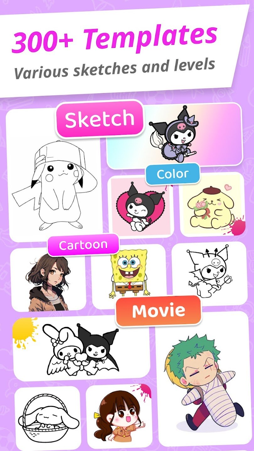 Приложение оснащено множеством практичных функций, которые помогут вам в вашем творческом путешествии. Вы можете настроить прозрачность изображения-шаблона, зафиксировать его на месте и использовать фонарик вашего телефона для лучшей видимости. Разнообразная библиотека бесплатных шаблонов, включая популярных персонажей, таких как Пикачу и Скуби-Ду, дарит бесконечное вдохновение.