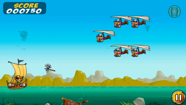 В этой игре нам предстоит помочь пирату спасти свой клад от нападения летающих викингов! Необходимо задавать топору такую траекторию полета, что бы сбить как можно больше нападающих летунов. Не забывайте собирать бокалы с ромом, т.к. все знают как пираты любят его. Но он нам нужен для прохождения уровня, нужно наполнить бочку! Есть так же вариант игры просто на очки.Для работы нужны Библиотеки Qt.