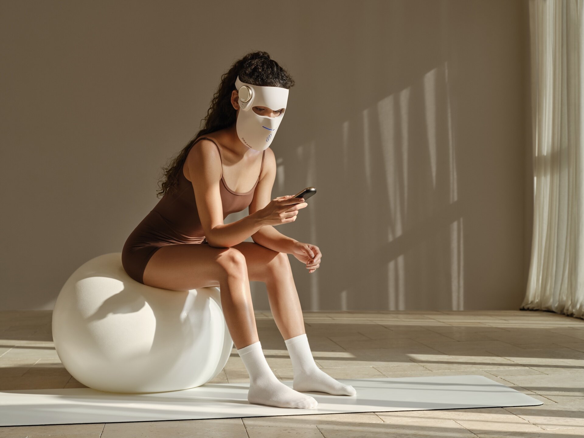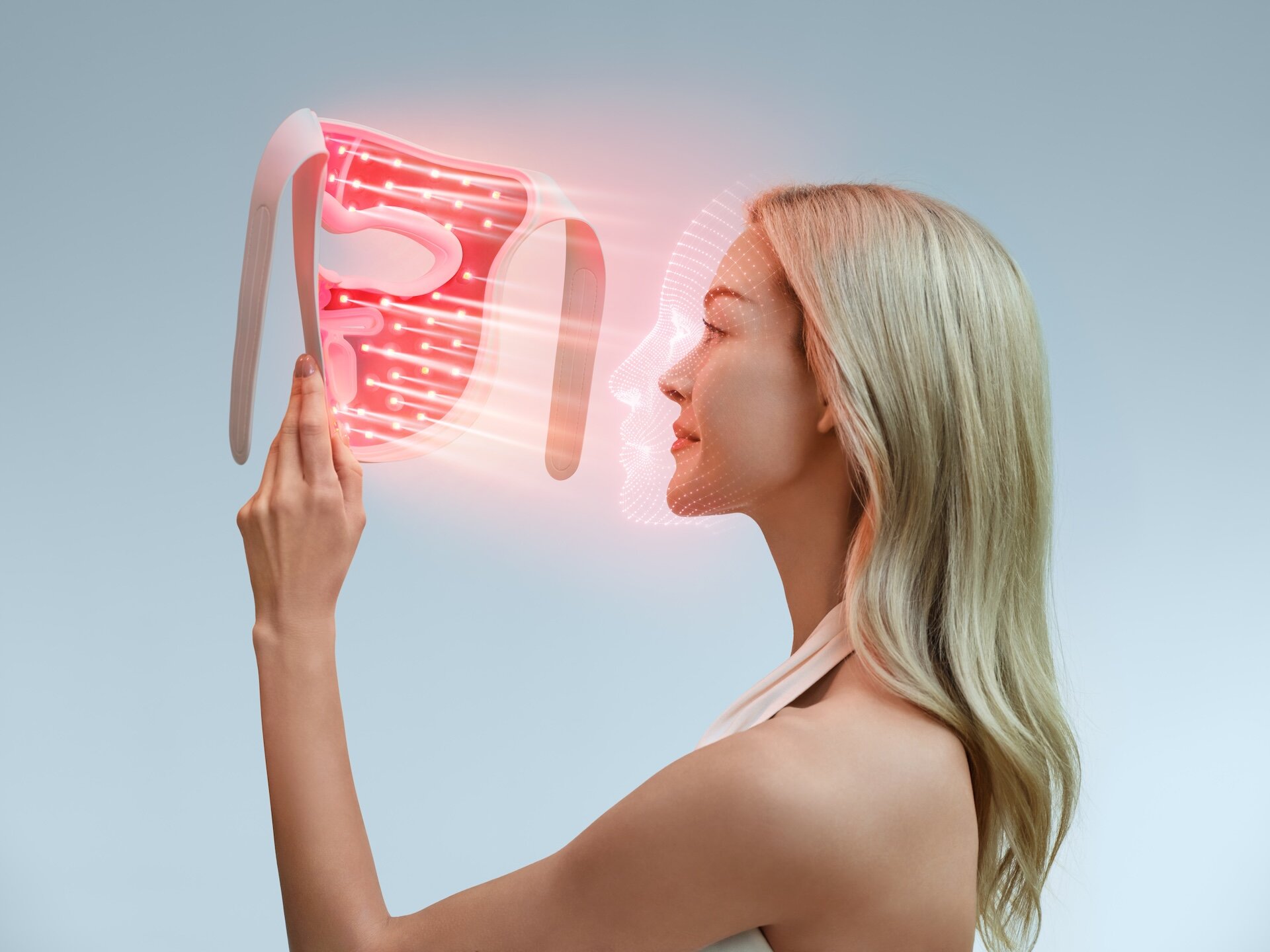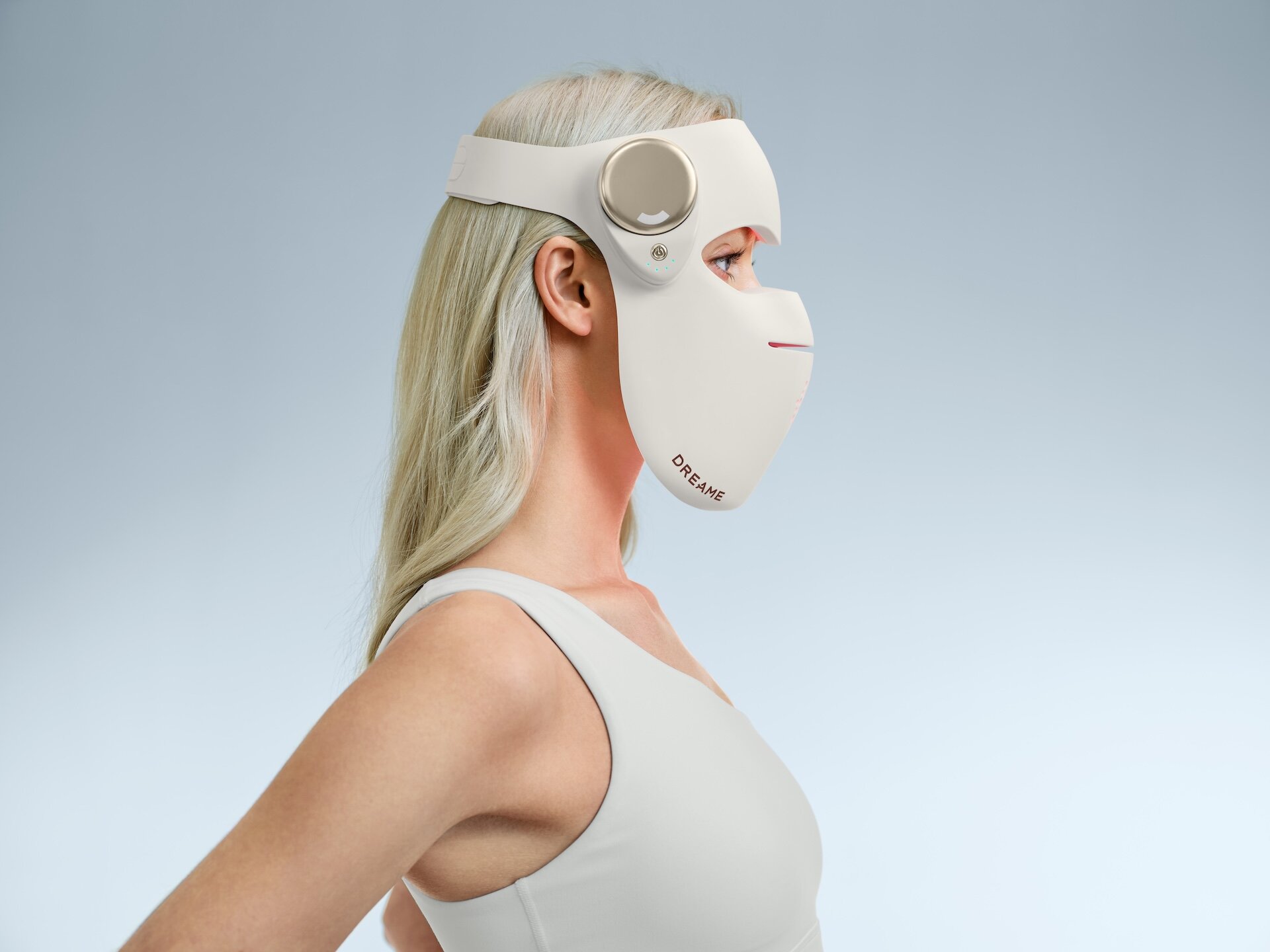 Маска выполнена в 3D-форме, повторяющей контуры лица — она формирует световую камеру, где 280 распределённых светодиодов находятся на расстоянии около 1 см до кожи.