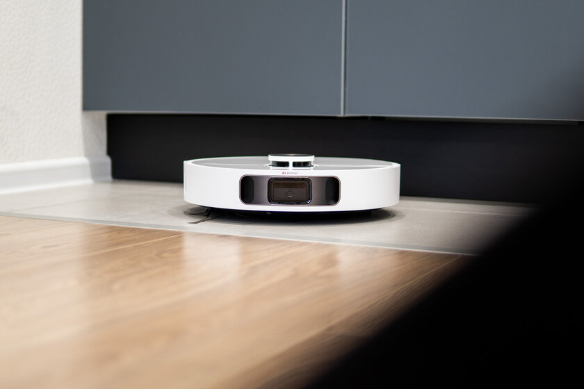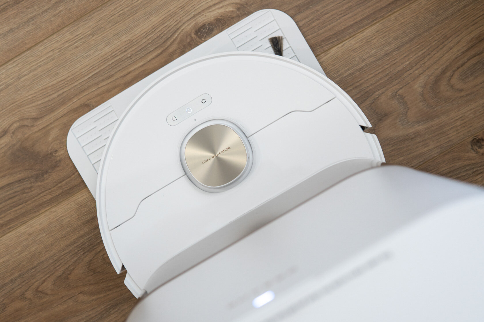Как и станция, робот-пылесос визуально почти не изменился и остался минималистичным. Узнать новую модель можно по декору в цвете «шампань». Высота корпуса не изменилась по сравнению с предшествующей моделью: порядка 8 см сам корпус и 9,7 см в сумме с лидаром.