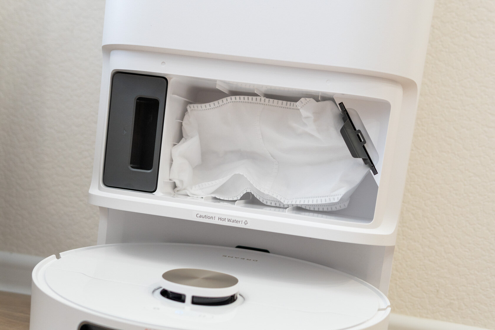 После каждой уборки станция не только опустошает пылесборник, но и промывает швабры. Нововведением L10s Pro Ultra стало использование воды температурой 58 градусов. Для сравнения, горячее водоснабжение в квартире по нормативу имеет температуру 60 градусов. По моим ощущениям микрофибры промываются действительно лучше. А значит, снимать их и простирывать вручную придётся реже. После промывки тряпочек выполняется цикл просушки горячим воздухом.