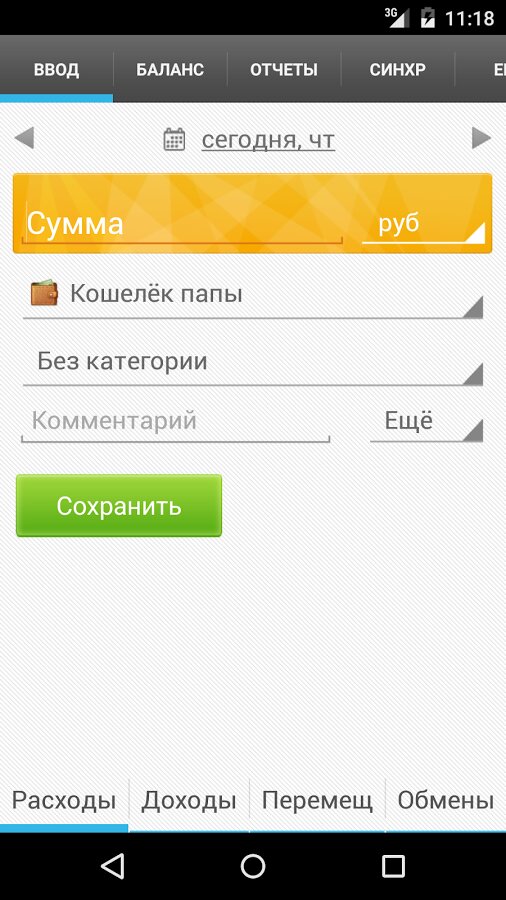 Для полного контроля над вашими финансами вам нужно просто вносить расходы. Делайте это на телефоне, не отходя от магазина! А если хотите, программа закачает их на сервер, где вам станут доступны все возможности учёта семейного бюджета.