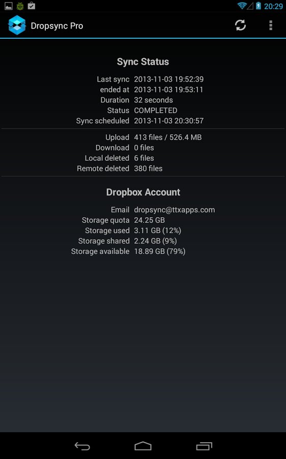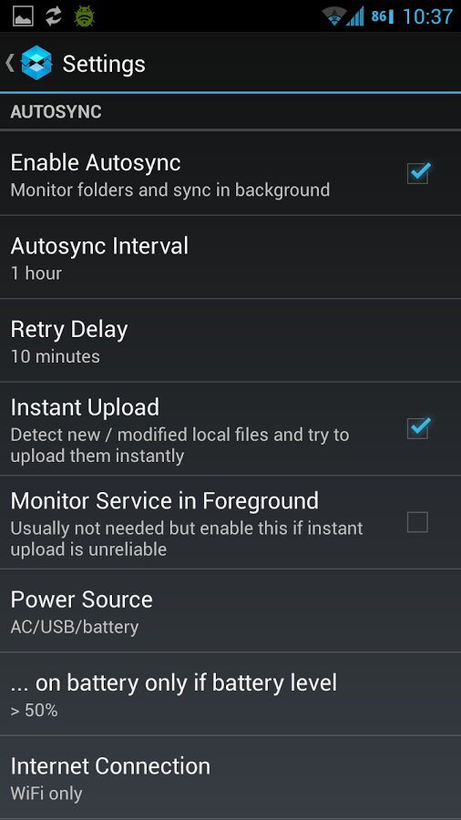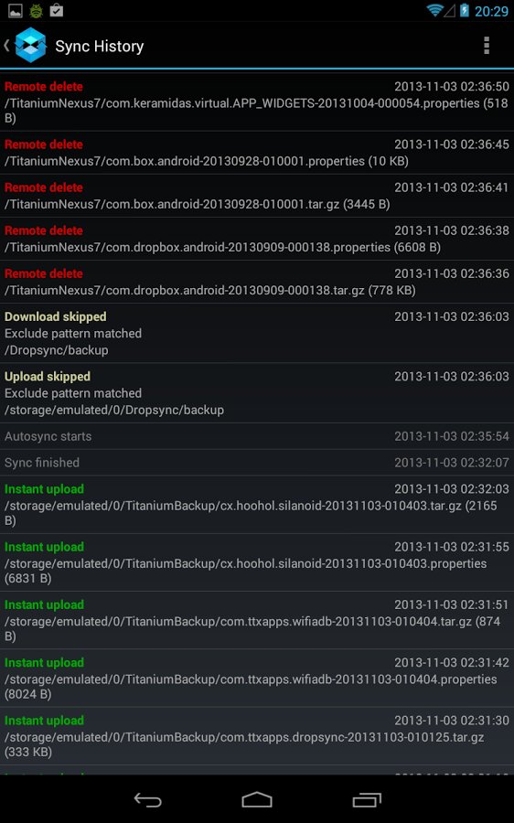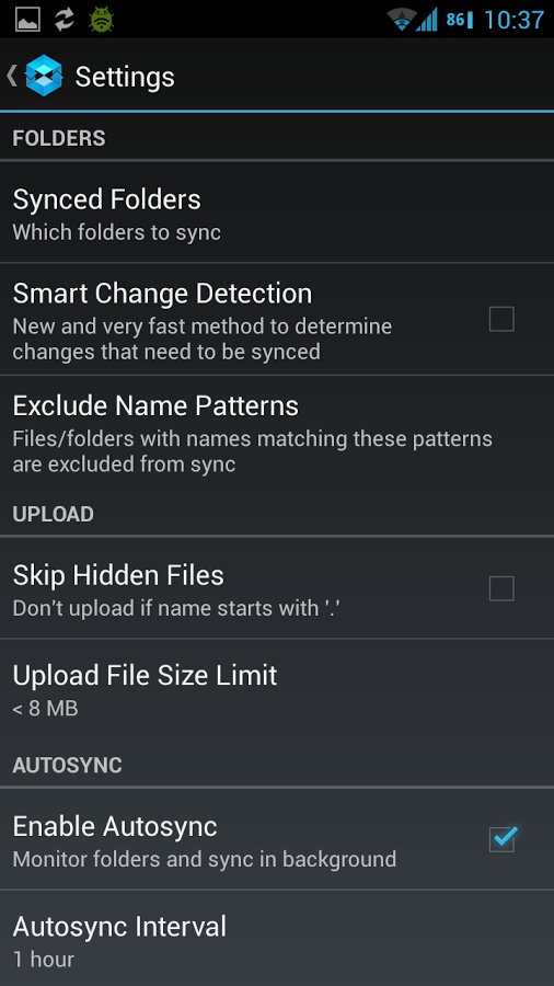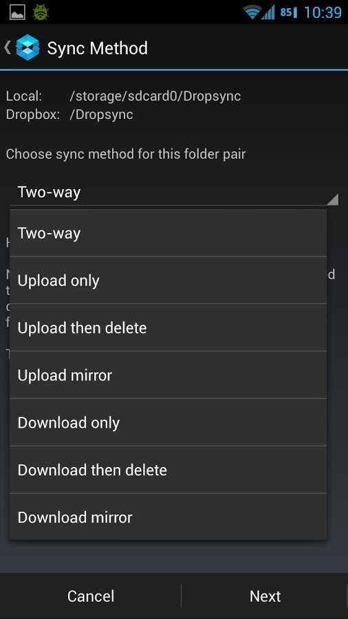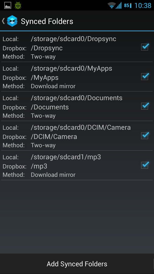 Dropsync — Надежный и эффективный клиент для полной двусторонней синхронизации Dropbox. Полная двусторонняя синхронизация. Выберите любую папку на SD карте и свяжите ее с папкой в Dropbox. С этого момента любые изменения в одной папке, будут автоматически распространяться на другую сторону. Оба пути, не только новые файлы, но и модификации и даже удаления файлов синхронизируются.