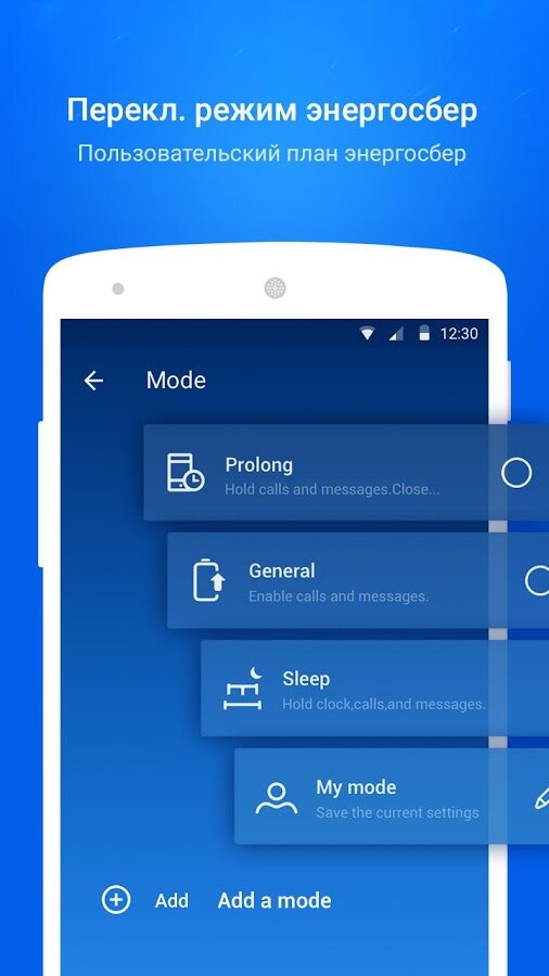 Начну с того, что же всё таки умеет данная программа. В программу предустановлены три главных режима, это энергосберегающий, основной и спящий режим, которые будут включаться автоматически, если вы этого захотите. Так-же вы можете добавить свои режими, со своими уникальными настройками. Режимы могут переключаться как автоматически от состояния батареи и периоду времени, так и вручную с виджета на рабочем столе. Так-же имеется виджет, для быстрой очистки памяти (пользователи DX Home знают что это), то есть программа выгрузит все фоновые приложения из памяти, чем увеличит стабильность и продлит заряд батареи. Программа так-же автоматически контролирует частоту процессора (только ROOT), когда телефон заблокирован или спит. На этом прелести программы не заканчиваются.