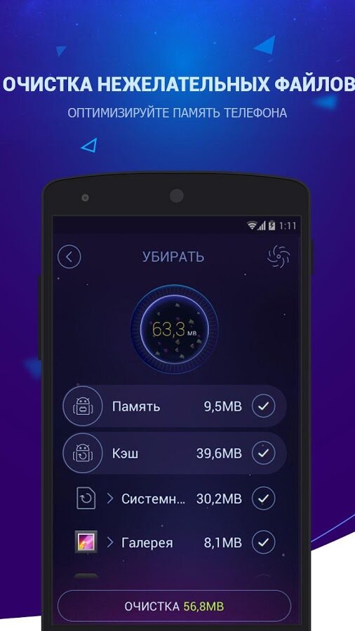 - Оптимизация памяти одним касанием;