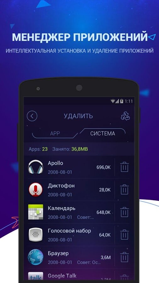 - Очистка кэша приложений, оставшихся после удаления приложений файлов;