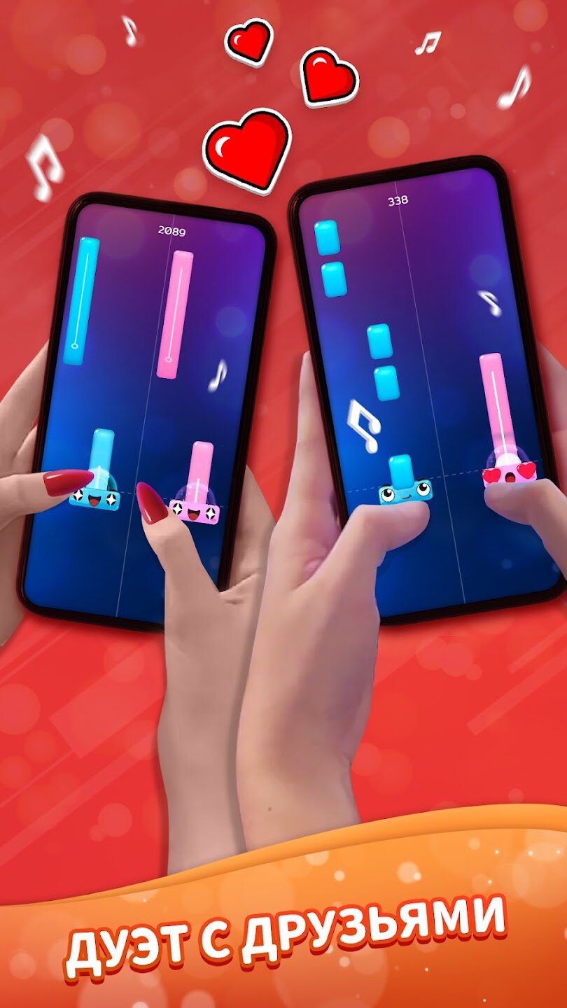 Duet Tiles: Dual Music Games — это очаровательная музыкальная ритм-игра, которая превращает популярные песни в увлекательный фортепианный дуэт. В причудливом 2D-мире мультфильмов вы нажимаете на мелодичные плитки в такт ритму, создавая гармоничный танец между вашими пальцами и музыкой. Игра приглашает вас погрузиться в ритм, когда мелодии оживают под вашими прикосновениями, предлагая свежий и визуально очаровательный взгляд на этот жанр.