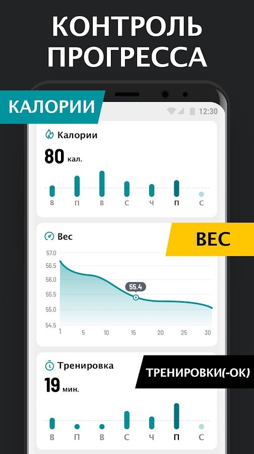 Используйте трекер для отслеживания ежедневных тренировок, сожженных калорий и потери веса. Синхронизируйте данные с Google Fit. Каждый день мы увеличиваем интенсивность тренировок, поэтому для адаптации тела необходимо делать перерывы каждые три дня.