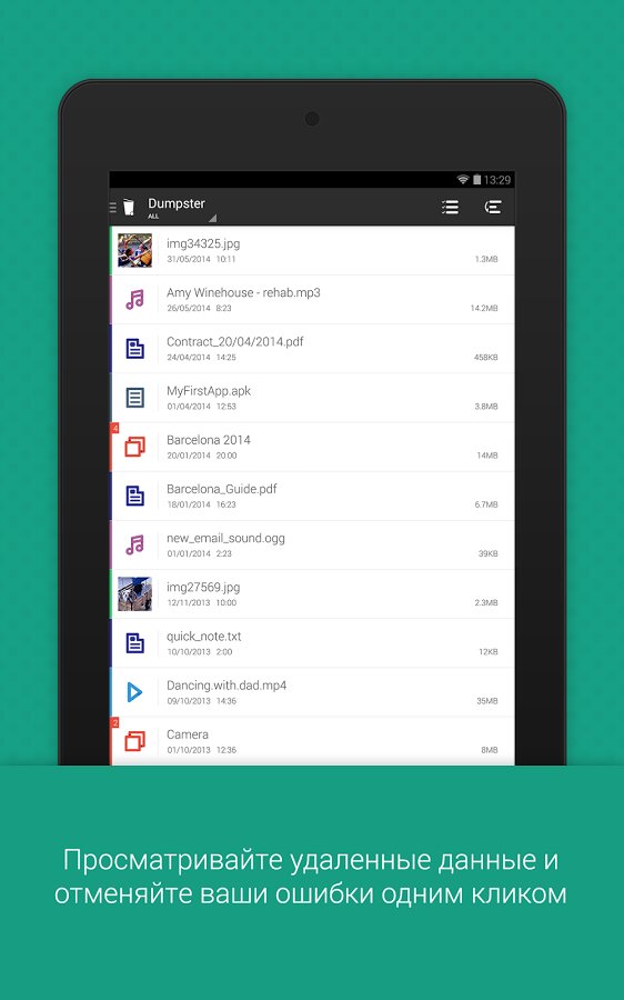 Dumpster – приложение для предотвращения случайного удаления определенного типа файлов.