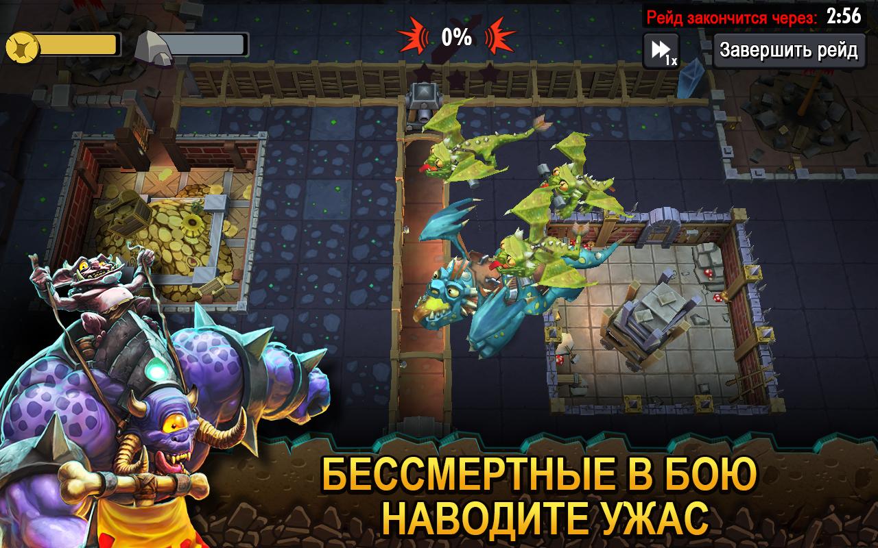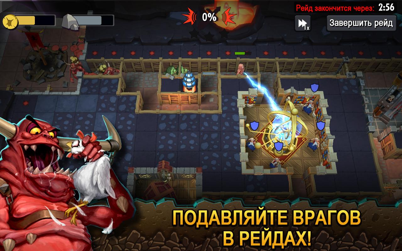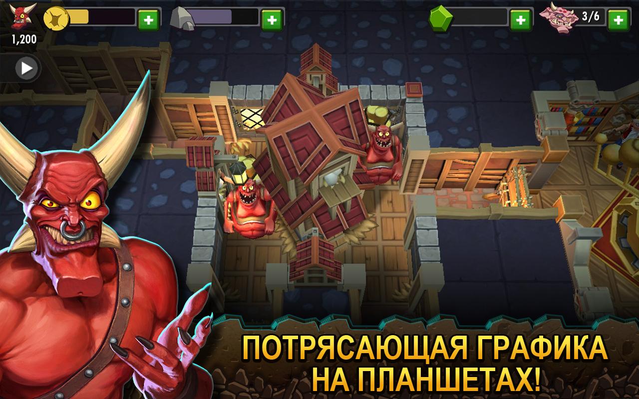 Dungeon Keeper — Увлекательная стратегия, в которой вы выступаете в роли настоящего зла – самого дьявола. Вам предстоит построить собственную зловещую империю и стать ее предводителем. Следует отметить, что игра нисколько не мрачная и не несет злых умыслов, все продуманно с большой долей юмора. Окончательно убедиться в этом самому можно только, если скачать игру Dungeon Keeper для Android. Продемонстрируйте свои способности к экономике, добывайте полезные ресурсы, стройте оборонительные сооружения, и захватывайте новые территории подземелья. Собирайте в команду разную нечисть и постройте империю огромных размеров.