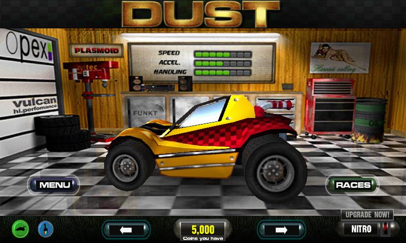 Dust Offroad Racing — продвинутые гонки по бездорожью для Android! Гонка в различных режимах игры, или практиковать вождения на любой из территории. Скорее садитесь за руль выбранного вами внедорожника и покорите адские дороги. Вождение по пересечённой местности поднимет уровень вашего мастерства на более высокую ступень. Покажите лучший результат на трассе и заработайте деньги на более мощный автомобиль. Вас ждет 7 различных местностей, 6 автомобилей, 3 режима игры, отличная музыка и высококачественные звуковые эффекты