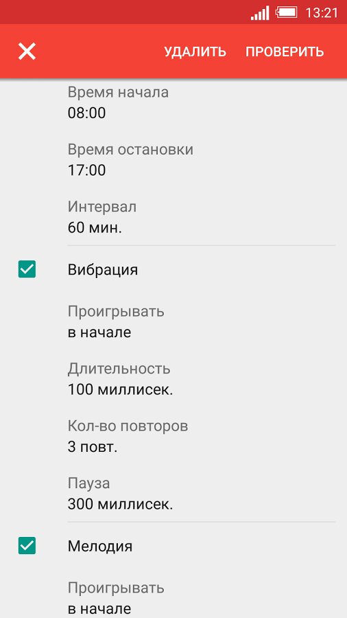 - настраиваемый период подачи сигнала (5, 10, 15, 30 мин и час)