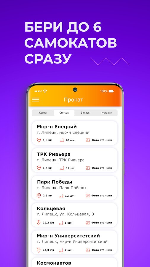 - Разблокируй от 1 до 4 электросамокатов в одно касание.