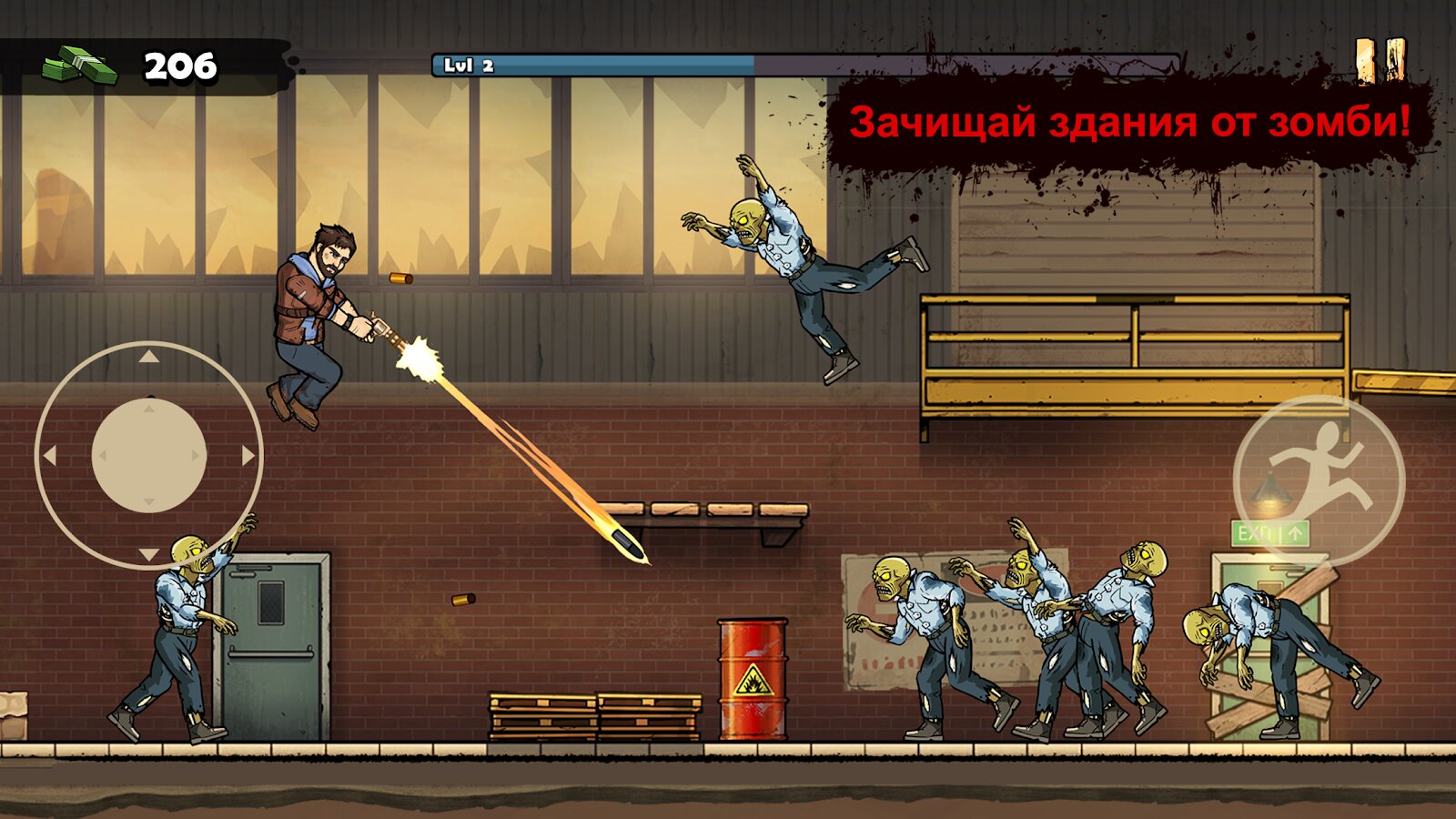 Зачисти каждое здание, чтобы открыть новые постапокалиптические локации, включая пустыню, заросший город, и покрытый снегом военный бункер. Открывай новые типы зомби, боссов и других врагов.
