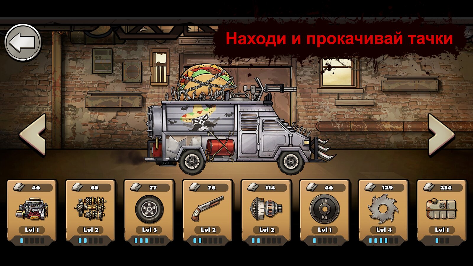 Найди брошенные автомобили и превращай их в машины по убийству зомби. Тебя ждут Новые машины, грузовики, гоночный автомобиль, и даже автомобиль на воздушной подушке. Не забудь усновить шипы на бампер и пулемет на крышу. Зомби даже не успеют понять, что их убило!