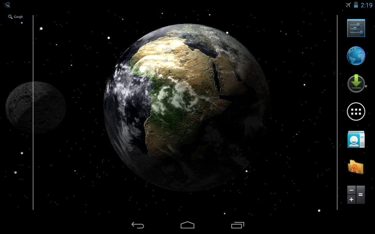 Красивая Земля Live Wallpaper — это великолепное решение для любителей красивых живых обоев для Android устройств. Пользователи смогут наблюдать Землю в 3D режиме с рельефом, глубиной океана и движущимися облаками. Возможен просмотр модели Земли сделанной по средствам фотографий NASA, ночью с великолепными огнями мегаполисов. В настройках можно выбрать цвет солнечного свечения и положение солнца по трем координатам. Пользователи смогут включать и выключать отображение луны, использовать фон с анимированными звездами или собственное изображение. Доступны эффекты в виде НЛО, Санта-Клауса и метеорита. Кроме Земли возможен выбор всех планет Солнечной системы. Поддерживается масштабирование и настройка тем.