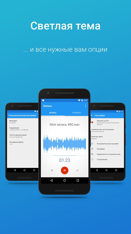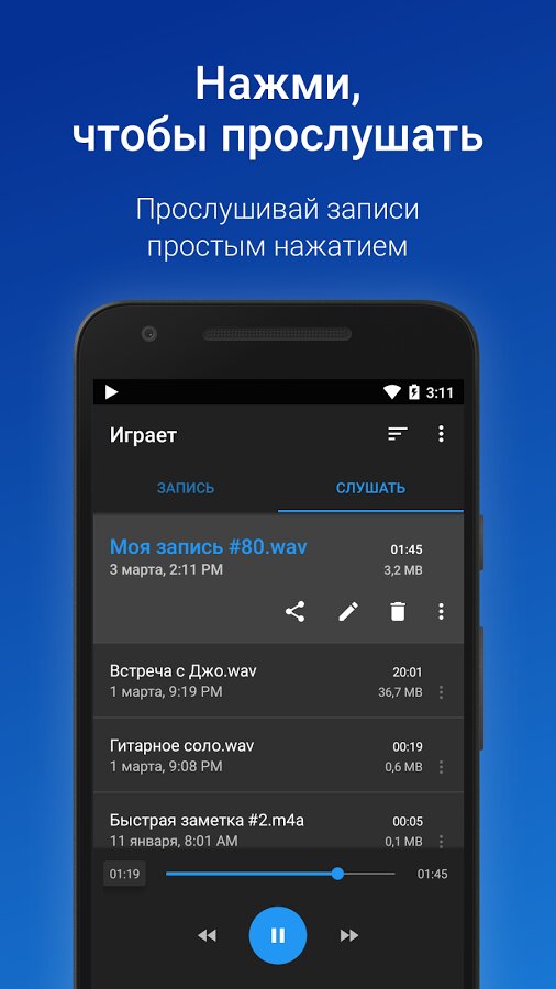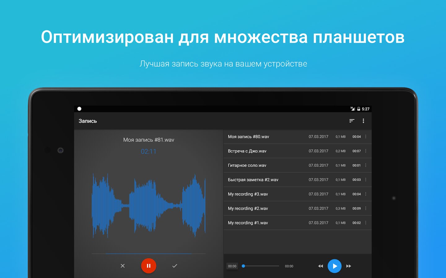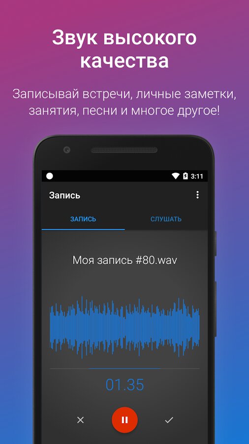 Диктофон Easy Voice Recorder довольно простой в применении. Он надежный и умеет быстро адаптироваться под ваши потребности. Диктофон невероятно полезен студентам для записи лекций и семинаров, на работе с ним можно записывать встречи и собеседования, отправлять сотрудникам записи через мессенджер или электронную почту. Люди творческих профессий могут записывать песни и музыку в отличном качестве.