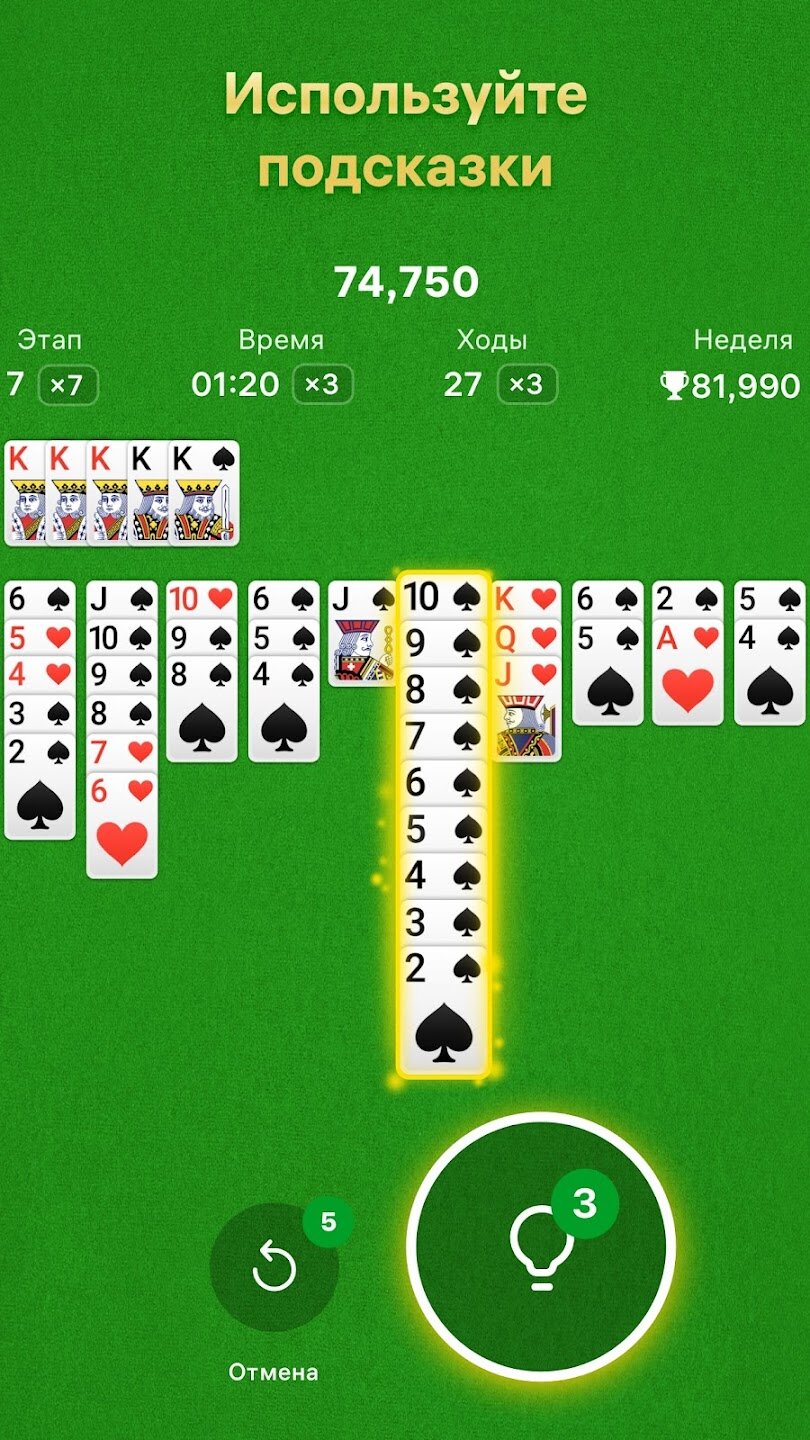 - Удобные для игрока инструменты, включая неограниченные подсказки и отмену хода.