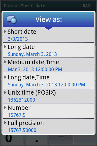- Представление результата в наиболее удобном виде: с округлением, в градусах-минутах-секундах, как день недели...