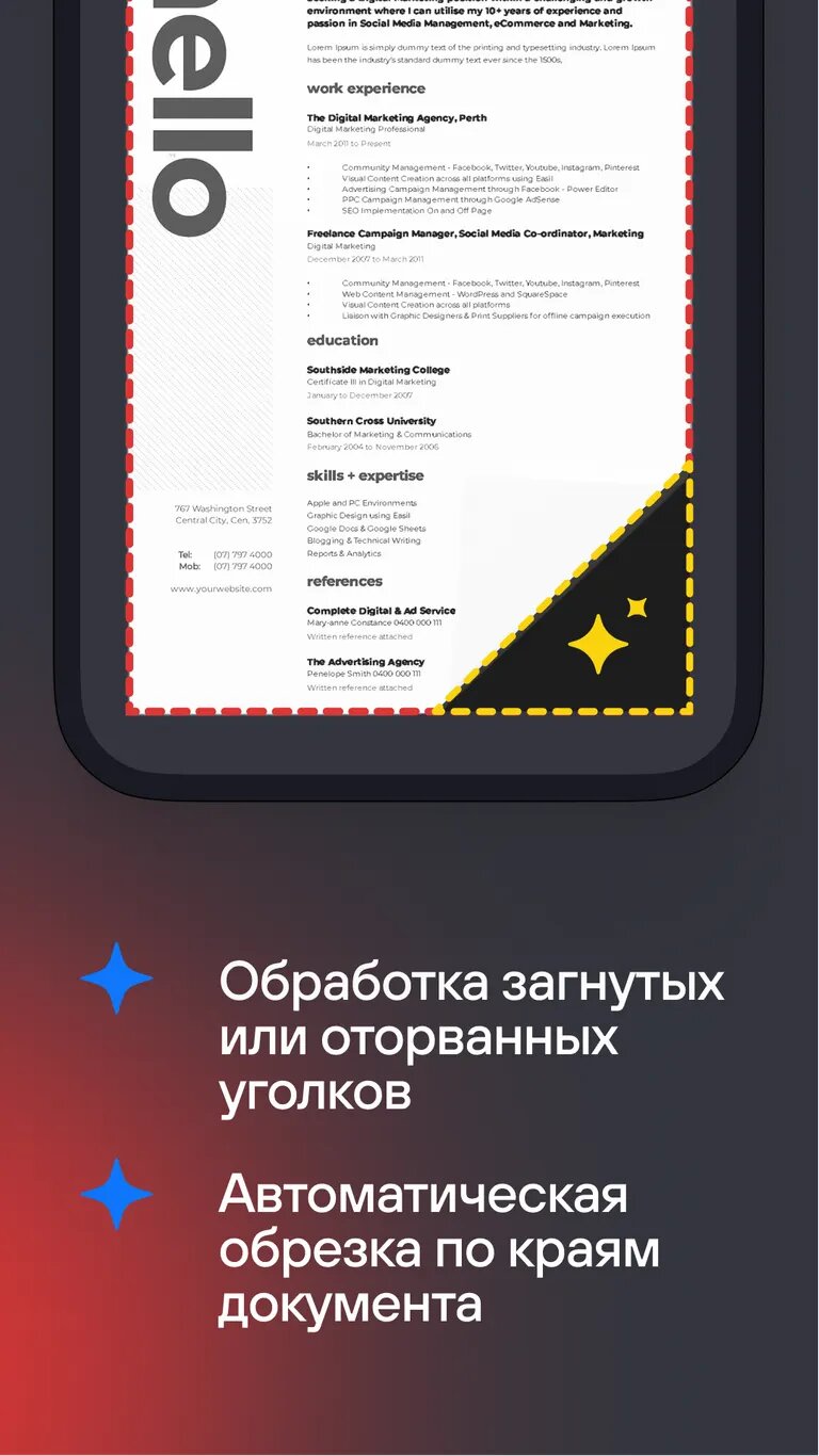 - Автоматическое обнаружение краев и обрезка с коррекцией перспективы