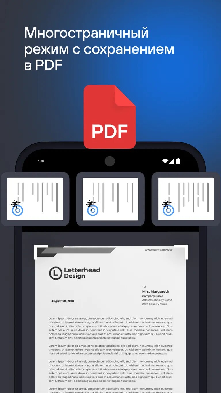 Сканер документов — это интеллектуальный мобильный сканер, который преобразует бумажные документы, квитанции и книги в четкие цифровые копии в форматах JPG и PDF с возможностью распознавания текста для экспорта в Word.