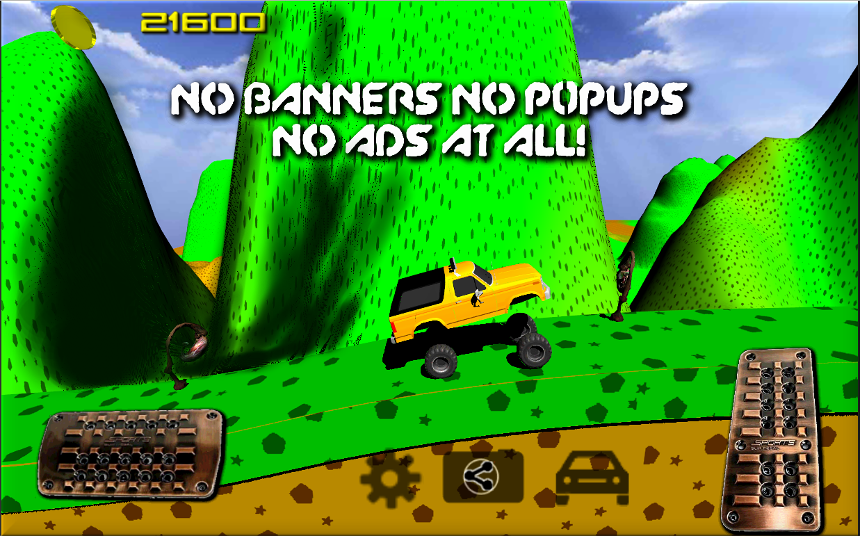 Начать прохождение Eat Dirt Hill Climb 3D предлагается на стареньком грузовике, подвеска которого максимально чувствительна ко всем деталям локации. Колеса будут пружинить и подстраиваться под неровности дороги. При этом управление сводится к движению вперед и торможению.