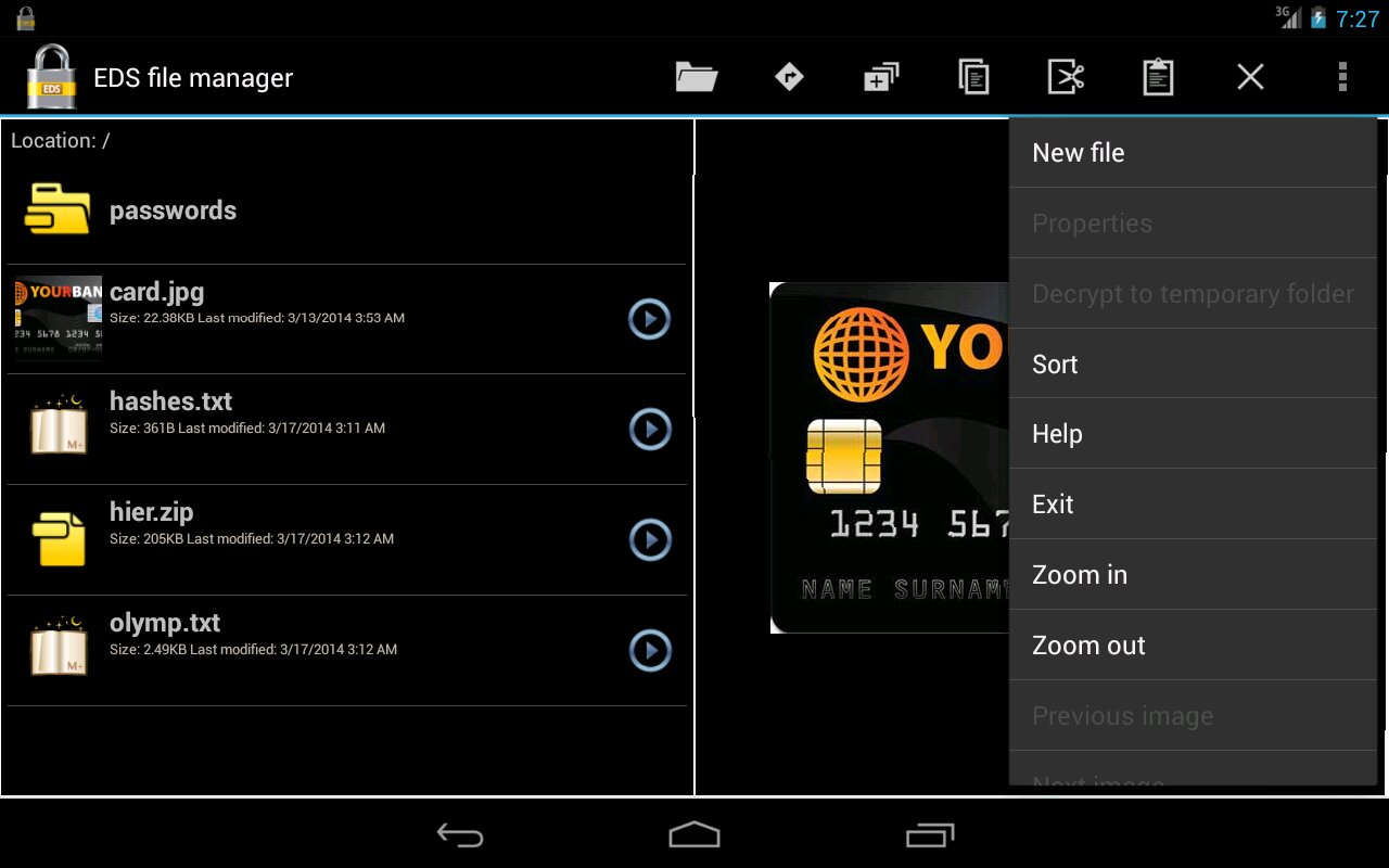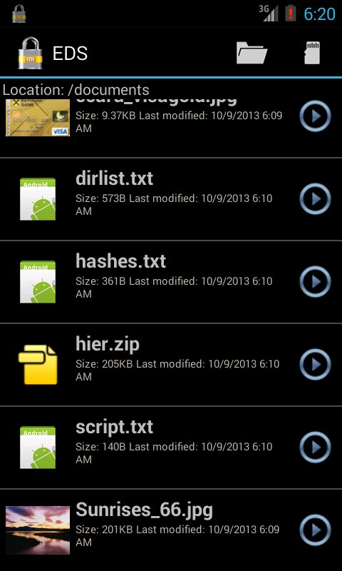 EDS Lite 2.0.0.237 Приложения / Android / Блокировка приложений и файлов Скачать на Трешбоксе Android 4.0+ Другие версии EDS — хранение файлов в зашифрованном контейнере для предотвращения несанкционированного доступа к ним.Обновлено: 29 апреля 2020, 01:02. Dimaska Пользователь 1 комментарий Оставьте комментарий... del 12 лет 1.3.2.76 — More encryption algorithms: Twofish, AES-Twofish, AES-Twofish-Serpent, Serpent-Twofish-AES, Twofish-Serpent — Android 4.3 support — Added French translation — Bug fixes