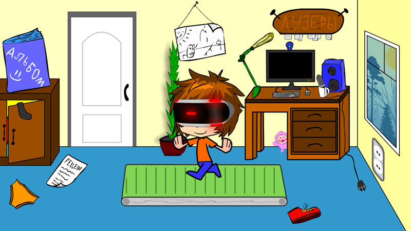 Сюжета особо и нету, тем не менее Ивангай у себя дома бежит на беговой дорожке в очках виртуальной реальности. Получается, что Ваня бежит и в реальности, и в игре, в которую играет через очки VR.
