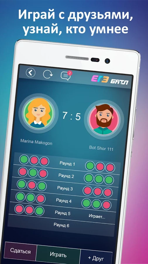 ЕГЭ: Батл — это не просто подготовка к ЕГЭ, ОГЭ или ГИА. Впервые перед тобой не учебник, а полноценная викторина, борьба умов, где предмет можно выучить, играя с друзьями!