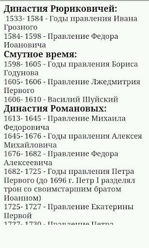 Данное приложение поможет вам получить быстрый доступ ко всем наиболее значимым датам истории России при подготовке к ЕГЭ. Все события расположены в хронологическом порядке и разбиты на специальные разделы по векам. Отдельным разделом выделены даты правления русских царей, императоров и прочих лидеров.