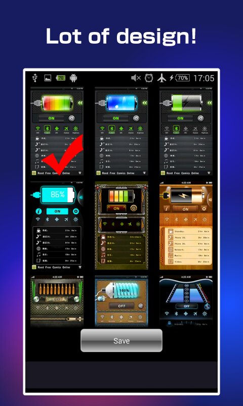 Это приложение поставляется с 2 набора виджетов, просто нажмите на виджет чтобы включить его! Быстро и просто!