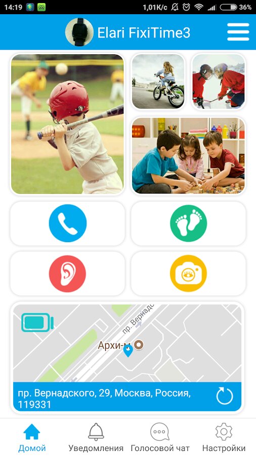 - Отслеживать местоположение ребенка с часами.